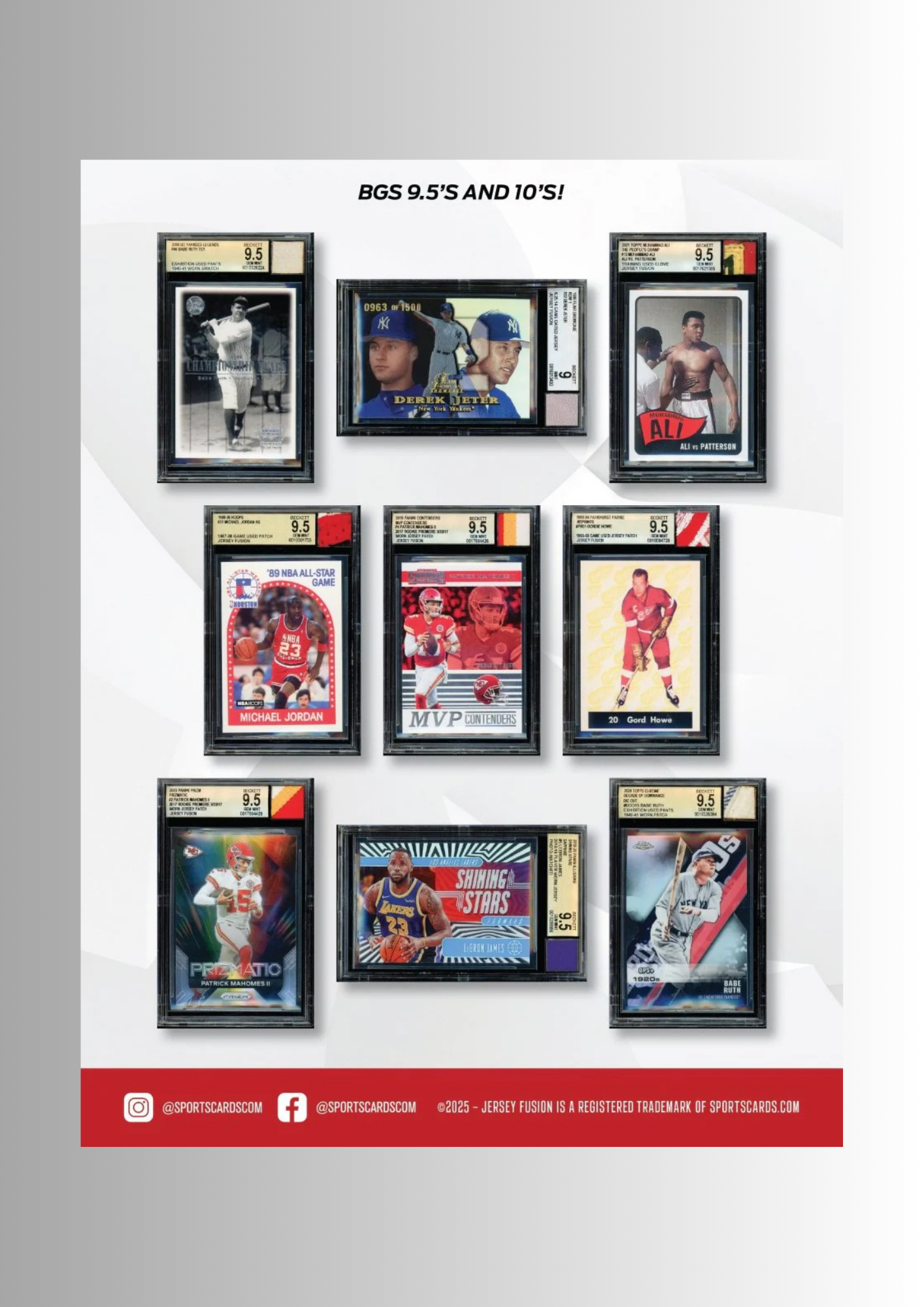 Die Legendary Collection vereint originale Karten mit spielgetragenen Memorabilia ikonischer Athleten – von Beckett in Slabs versiegelt, inkl. QR-Code zur lückenlosen Herkunft. Limitierte Auflage.